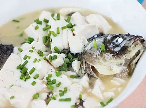 材料:鮮鯽魚1條,豆腐250g,油、蔥、姜、清湯、料酒、精鹽、味精各適量。