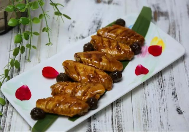 4、將龍眼肉用剩余湯汁燒熱,擺在雞翅周圍。